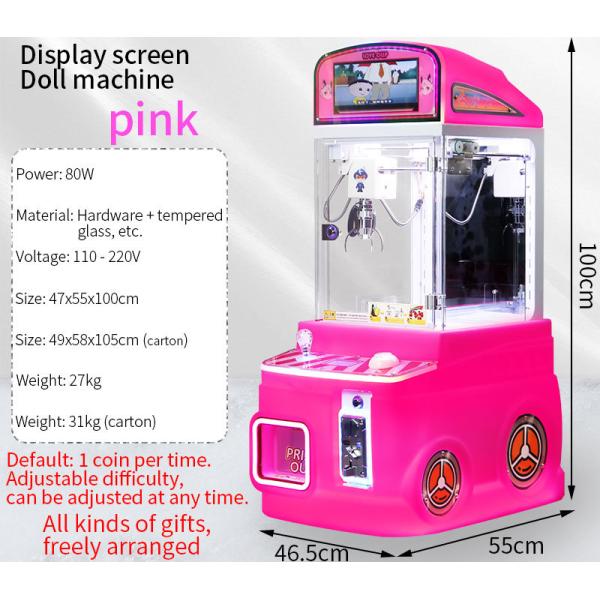 Mini Arcade Claw Machine Pink With Display Screen Coin-operated Toy Vending Machine Images |